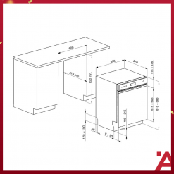 – Máy rửa chén âm bán phần, bề mặt thép không rỉ
