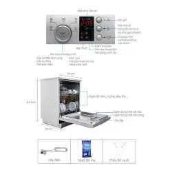 5 chương trình rửa: rửa chuyên sâu 70°C, rửa bình thường 65°C, rửa Eco 50°C, rửa nhanh 45°C, ngâm trước khi rửa.