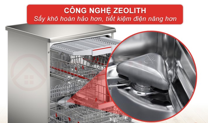 Công nghệ Zeolith trên máy rửa bát Bosch SMS6ZCI16E giúp tối ưu sấy khô bát đĩa hơn nhờ ứng dụng hạt Zeolite. Đây là hạt khoáng chất tự nhiên với cơ chế hút hơi ẩm trong quá trình rửa và thải ra dưới dạng không khí nóng, khô ấm. Quá trình hút hơi ẩm – thải khí nóng này được lặp đi lặp lại nhiều lần cho đến khi kết thúc quá trình rửa.