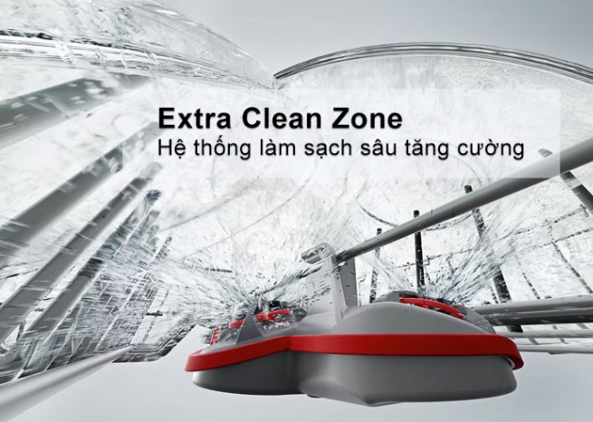 Kết hợp với hệ thống thủy lực Extra Clean Zone làm sạch sâu giàn giữa, chức năng tăng cường làm sạch giàn rửa cũng như bát đĩa, vật dụng nhà bếp. Mang lại kết quả làm sạch tối ưu nhất đến cho người dùng, tăng độ yên tâm mỗi khi dùng sản phẩm mà không phải lo những vấn đề như vết bẩn, dầu mỡ,.. còn bám trên vật dụng. Ngoài ra, người dùng cũng có thể chủ động bật tắt thông qua công tắc ON/OFF ngay trên hệ thống.