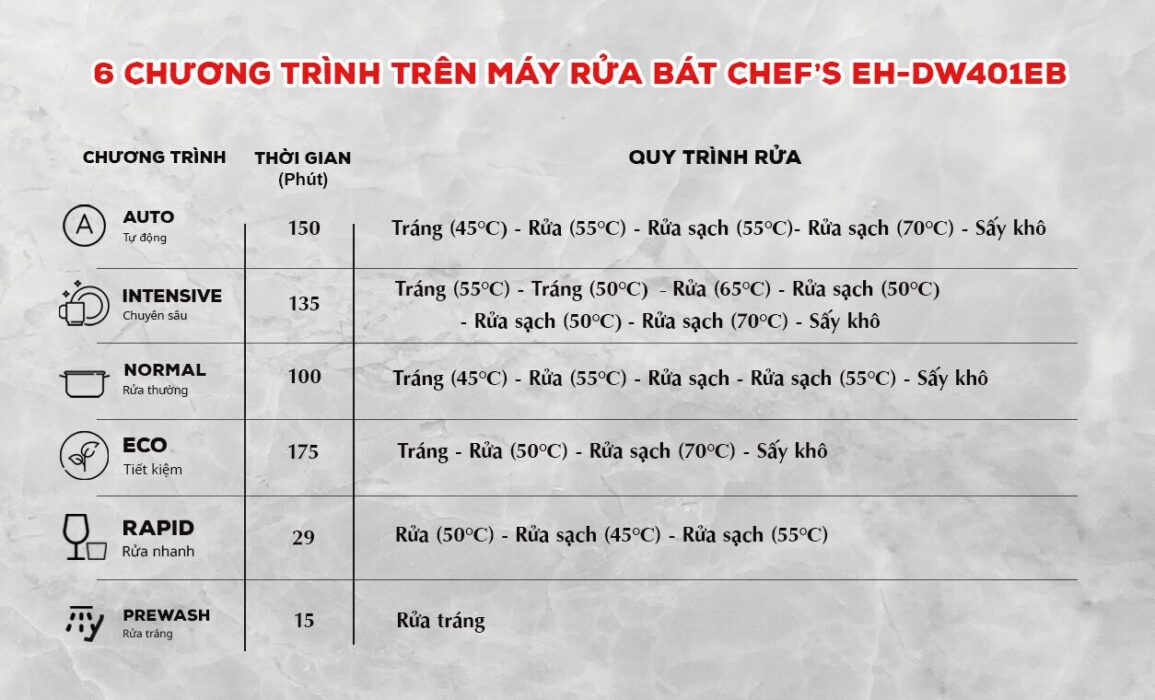 – Tính năng hẹn giờ trễ giúp người dùng chủ động hẹn giờ rửa khi cần thiết. Máy rửa bát Chef’s cho phép hẹn giờ trễ trên đến 24h.