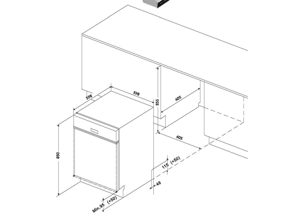 - Kích thước khoét âm tủ: 605R x 600S x 820-870C