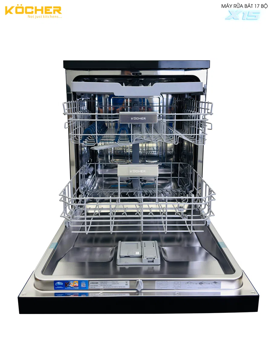 Máy rửa bát Köcher X Series là giải pháp toàn diện cho căn bếp hiện đại, giúp bạn giải quyết bài toán rửa sạch, sấy khô, sắp xếp và bảo quản đồ dùng một cách hiệu quả. Với những tính năng ưu việt như công nghệ rửa sạch, sấy khô Extra Plus Drying, hệ thống 3 giàn rửa full size, kích thước chỉ từ 775mm và chế độ lưu trữ bát đĩa Fresh Air 168H, sản phẩm không chỉ tiết kiệm thời gian, công sức mà còn đảm bảo diệt khuẩn triệt để, giữ cho đồ dùng luôn an toàn.