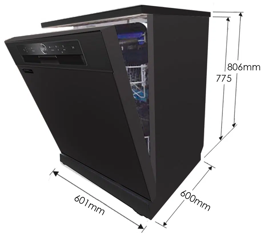 Thiết kế máy đứng độc lập, có hai vùng rửa và ngăn dao kéo 3 lớp. Dung tích của máy có thể chưa tới 13 bộ bát đĩa châu Âu. Khay xếp bát đĩa chắc chắn, dễ sử dụng, có thể kéo ra dễ dàng, thuận tiện cho việc sắp xếp đồ vào máy.