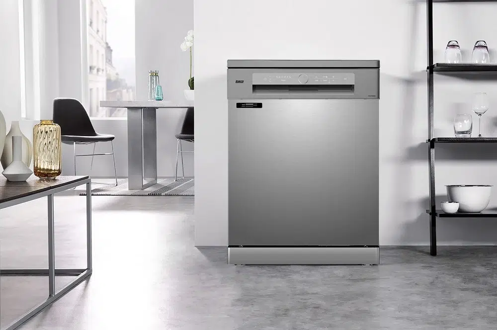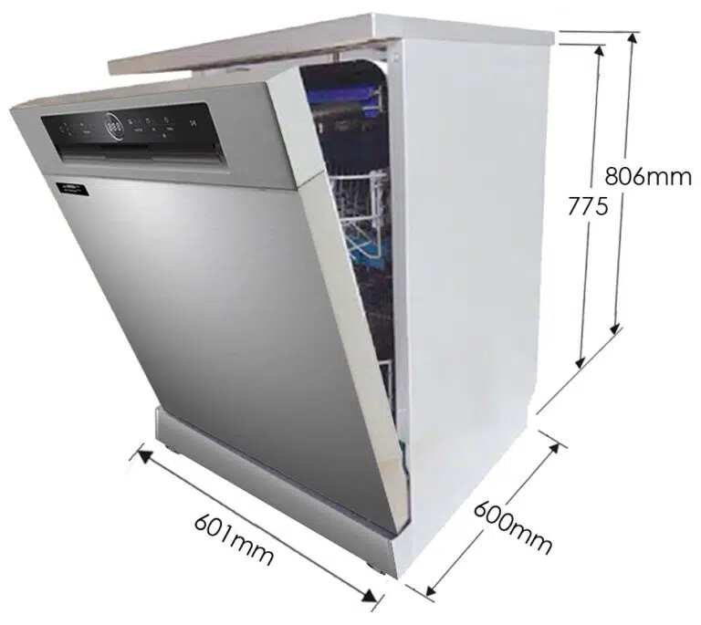 Thiết kế máy đứng độc lập, có hai vùng rửa và ngăn dao kéo 3 lớp. Dung tích của máy có thể chưa tới 13 bộ bát đĩa châu Âu. Khay xếp bát đĩa chắc chắn, dễ sử dụng, có thể kéo ra dễ dàng, thuận tiện cho việc sắp xếp đồ vào máy.
