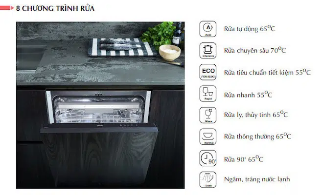- Chương trình rửa: 8