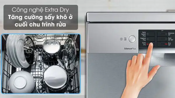 Kích hoạt chế độ sấy tăng cường Extra Dry sẽ làm khô bát đĩa của bạn cực kỳ kỹ lưỡng bằng cách tăng nhiệt độ trong chu kỳ rửa và kéo dài gian đoạn sấy lâu hơn – chỉ với một lần nhấn nút. Chương trình diệt khuẩn sẽ phù hợp với người sử dụng nhạy cảm. Điều này đem đến hiệu quả làm sạch và an toàn vượt trội của máy rửa bát so với các hình thức làm sạch thông thường.
