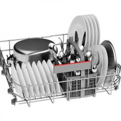 Máy rửa bát Bosch SMS46GW01P với chất liệu lồng làm bằng thép không gỉ với hệ thống giỏ dễ dàng cho việc sếp bát đĩa rửa sạch, đạt hiệu quả nhất.
