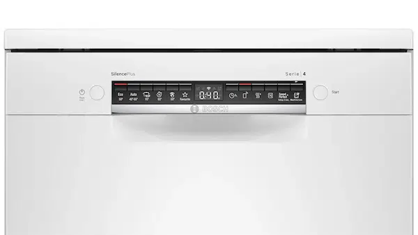 Máy rửa bát Bosch SMS4HAW48E sử dụng bảng điều khiển cơ kết hợp điện tử, màn hình Led với độ phân giải cao hiển thị các biểu tượng đồ họa và văn bản đơn giản.