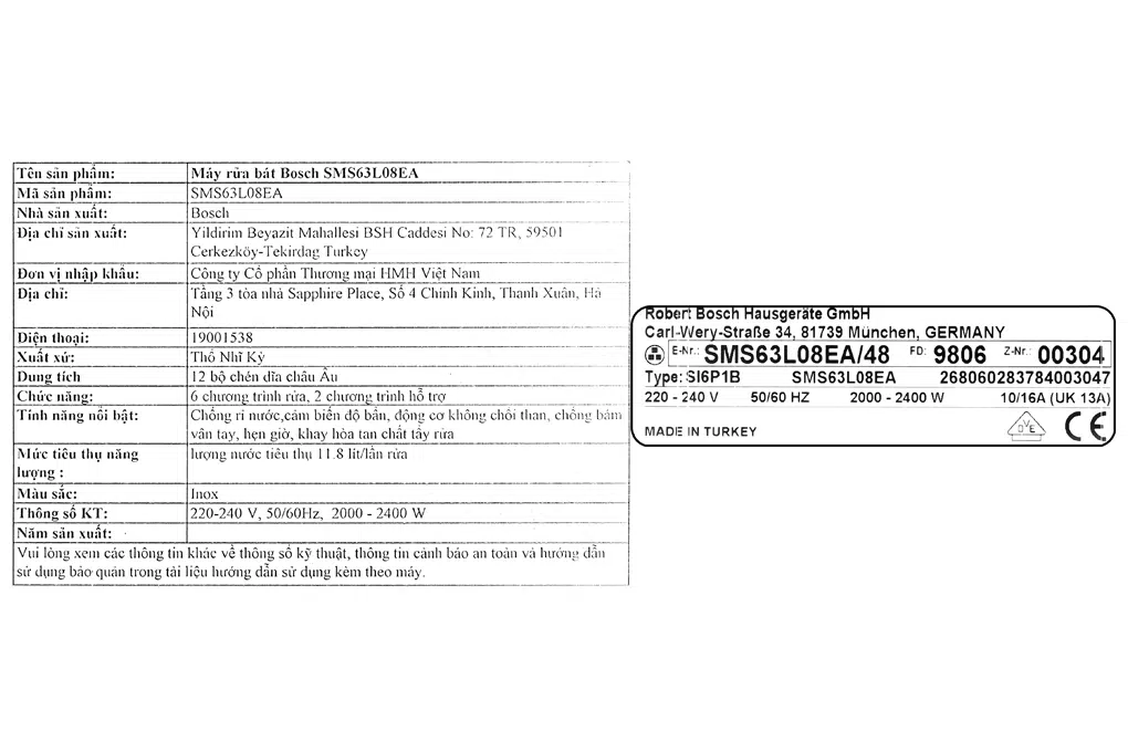 - Thương hiệu Bocsh nổi tiếng của Đức, sản xuất tại Thổ Nhĩ Kỳ.