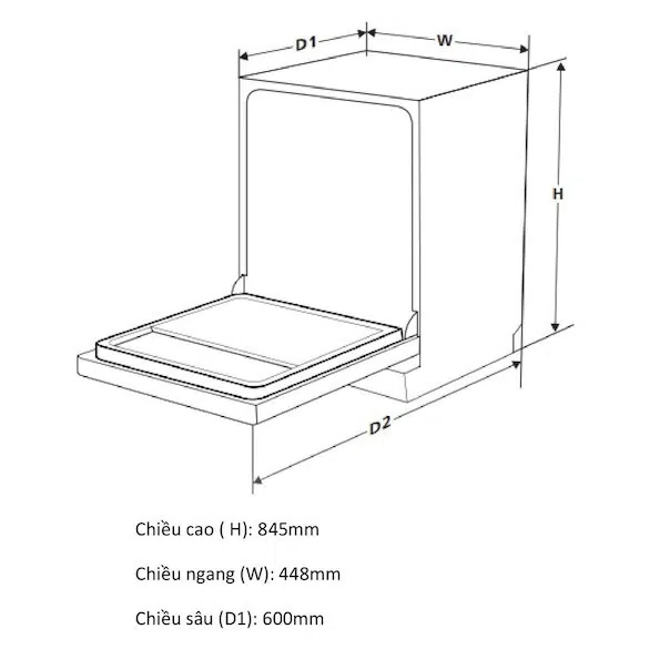 - Kích thước: 805mm (Cao) x 598mm (Ngang) x 598mm (Sâu)
