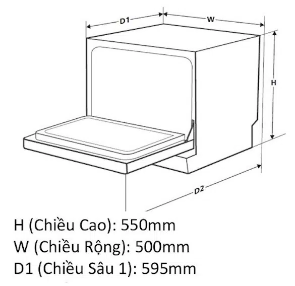 - Kích thước: 550 x 500 x 595 (mm)