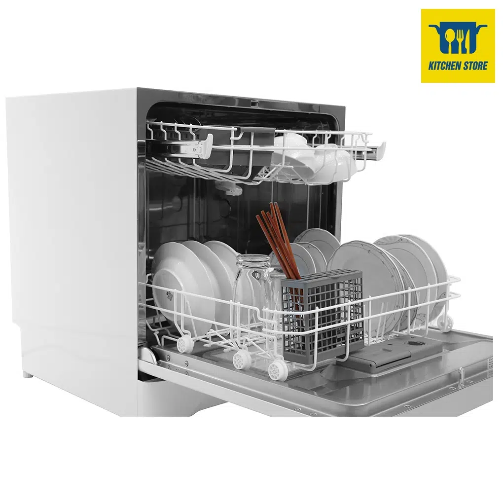 Máy rửa bát mini với thiết kế dạng thùng linh hoạt có thể lắp đặt ở nhiều vị trí trong phòng bếp nhà bạn như: lắp vào hộc tủ dưới kệ bếp (không lắp âm vào tường), để trên mặt bếp,…