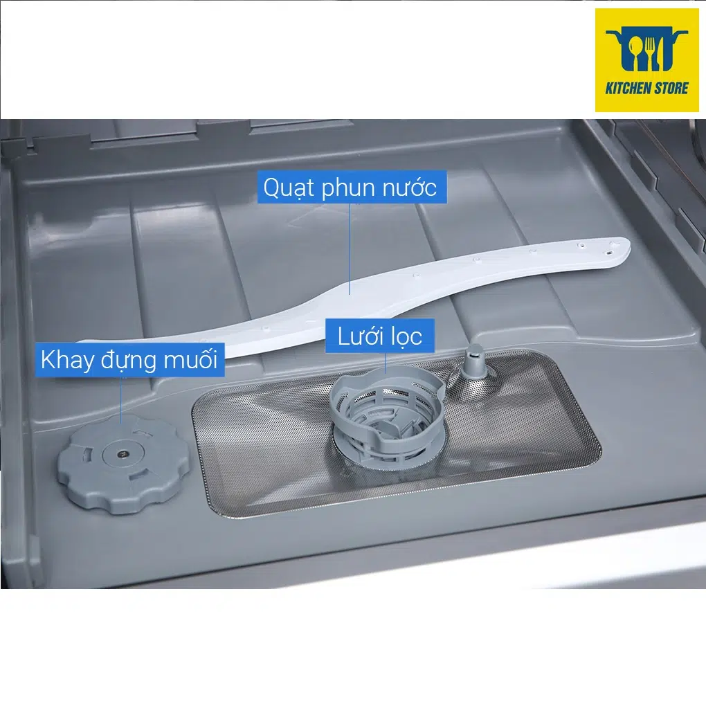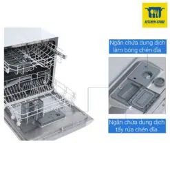 Máy rửa bát còn sở hữu nhiều chế độ tiện ích: chức năng rửa nhanh, rửa ly chuyên dụng, đèn báo chu kỳ rửa, giá đựng muỗng đũa tiện lợi, trang bị thiết bị chống tràn, tự ngắt nước khi bơm đầy bình, khoá trẻ em,…