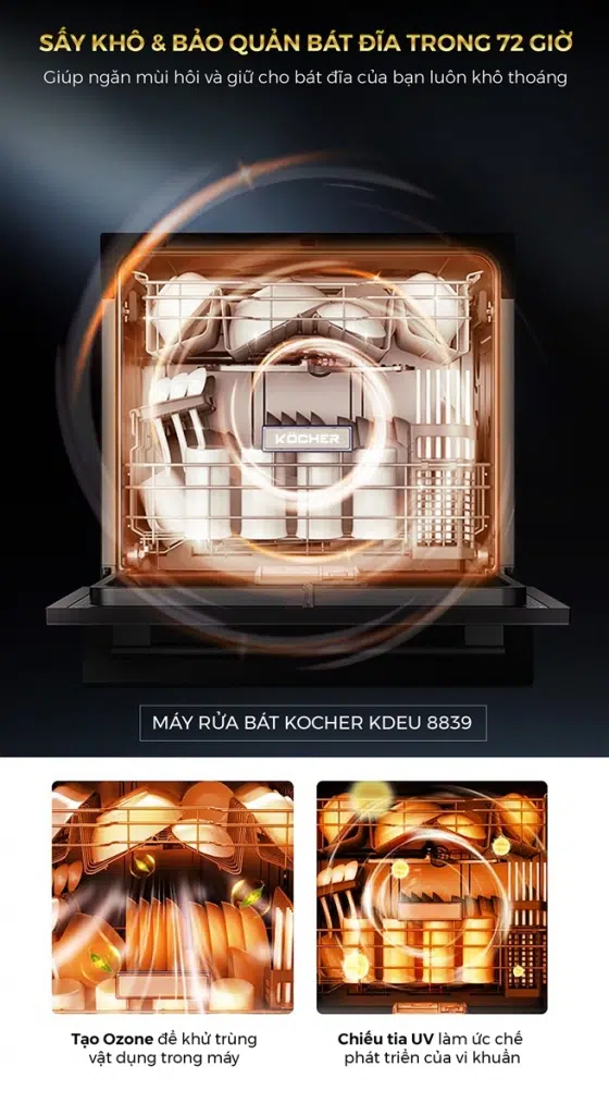 Máy rửa bát Kocher KDEU-8839 với công nghệ hiện đại, tiên tiến chắc chắn sẽ mang tới cho người tiêu dùng nhiều trải nghiệm tuyệt vời. Hãy cùng tìm hiểu dòng sản phẩm KDEU 8839 này ngay nhé.