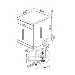 - Kích thước: W598 x D598 x H845 mm.
