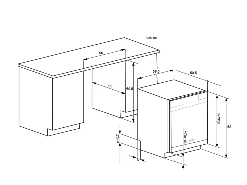 Thông số kỹ thuật máy rửa chén Spelier SP-08 DW/SILVER