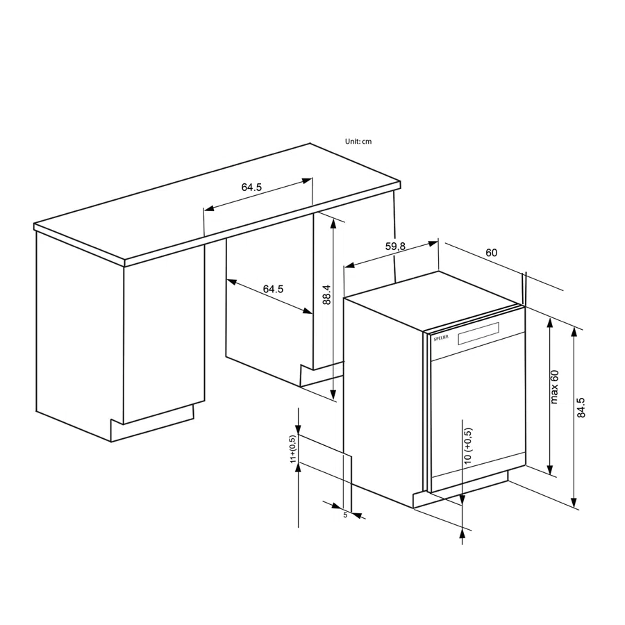 Thông số kỹ thuật máy rửa chén Spelier SP-14 DW