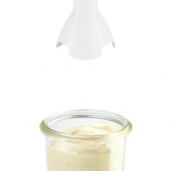 Tiện ích: • Tay cầm thiết kế nhẹ nhàng với hình dạng đặc biệt giúp ôm sát bàn tay khi hoạt động • Chân trộn bằng thép không gỉ chất lượng cao an toàn với thực phẩm, không vị và không bị đổi màu • Tất cả các bộ phận đều sản xuất bằng nhựa không BPA và có thể tháo rời • Bổ sung một chân xay nhỏ • Chống giật nhờ thiết kế đũa trộn đặc biệt