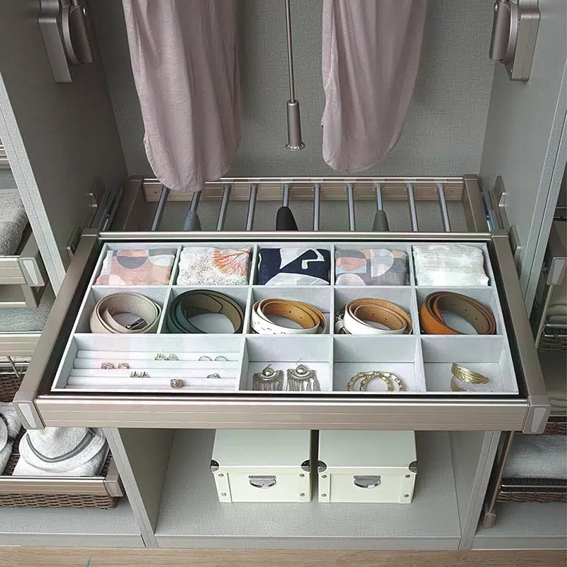 - Công việc đi làm hằng ngày khiến bạn trở nên bận rộn việc lựa chọn vật dụng cho trang phục như cavat, thắt lưng cũng làm tốn không ít thời gian, bởi tủ có quá nhiều đồ và lẫn với nhau khiến bạn khó lựa chọn. Đặc biệt với các chị em phụ nữ, việc lựa chọn được trang sức, phụ kiện phù hợp mỗi khi ra ngoài luôn cần rất nhiều thời gian. Vậy để tiết kiệm hơn thời gian cho việc chọn vật dụng tại sao bạn không nghĩ tới việc chọn một loại phụ kiện tủ quần áo có thể làm nhiệm vụ phân chia phụ kiện, trang sức tốt hơn.