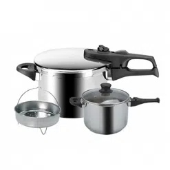 - Van điều áp, điều chỉnh 3 mức để người dùng chọn bất kỳ mức áp suất nào phù hợp với nhu cầu nấu.