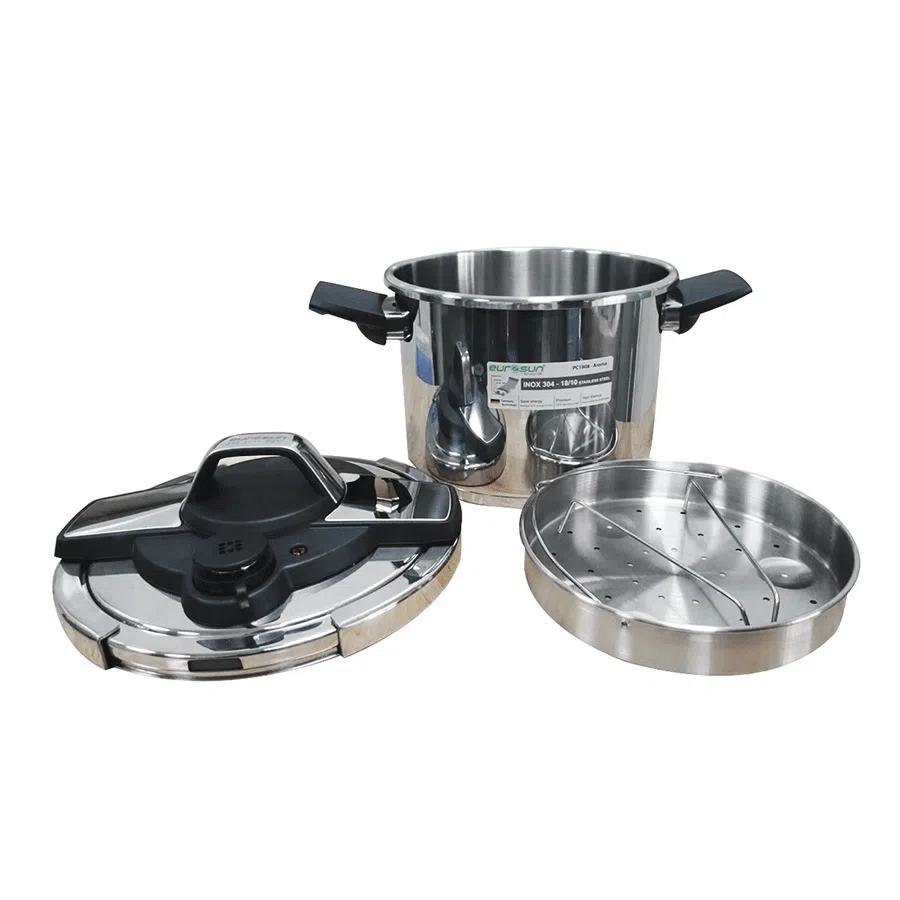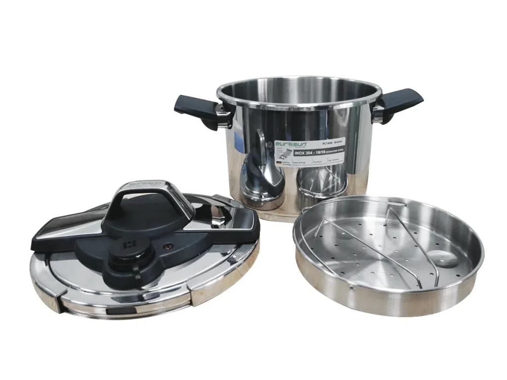 Với kiểu dáng sang trọng, hiện đại, màu bạc inox 304 tinh tế, nồi áp suất inox 304 Eurosun PC1908 – AROMA không chỉ giúp bạn thực hiện nhiều món ăn ngon mà còn tăng thêm vẻ đẹp sang trọng và hiện đại cho không gian bếp của bạn.