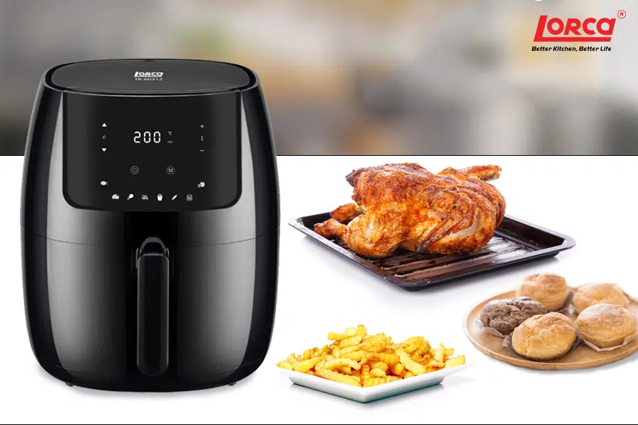 Những món ăn chiên rán giòn tan luôn là sự yêu thích của rất nhiều người. Tuy nhiên, những món ăn này có chứa quá nhiều dầu mỡ và gây ảnh hưởng xấu đến sức khỏe của con người. Hiểu được vấn đề đó, vì thế hãng Lorca đã cho ra đời sản phẩm nồi chiên không dầu TA-6003 giúp bạn thưởng thức được những món chiên rán yêu thích của mình mà vẫn đảm bảo được sức khỏe. Nồi chiên không dầu Lorca đang nhận được nhiều sự quan tâm của khách hàng.
