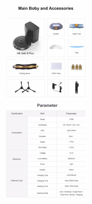 Robot hút bụi lau nhà Hubert HB-S68-B PLus