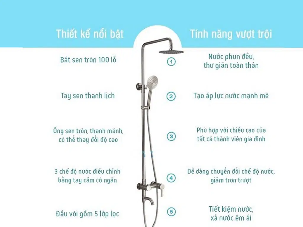 Đối với mỗi gia đình, việc lựa chọn Sen Cây Tắm Đứng chất lượng để dùng lâu dài là điều rất quan trọng. Vì không ai muốn cứ dùng một thời gian lại sửa chữa và thay thế khiến bạn vừa mất thời gian, công sức và tiền bạc. Kitchen Store đã đánh kỹ càng chất lượng từng sản phẩm và triển khai trương trình 1.99 triệu Trọn bộ Sen Cây Tắm Đứng Inox 304 Sale off đến 46%.