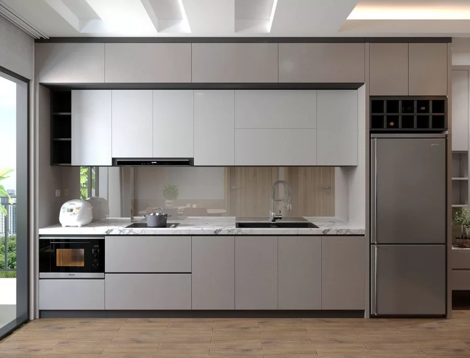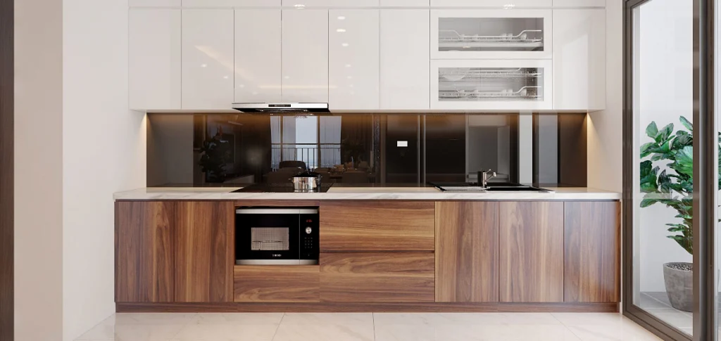 - Dễ thiết kế & thi công – Không cầu kỳ như bếp chữ L hay chữ U, giúp tiết kiệm chi phí lắp đặt.