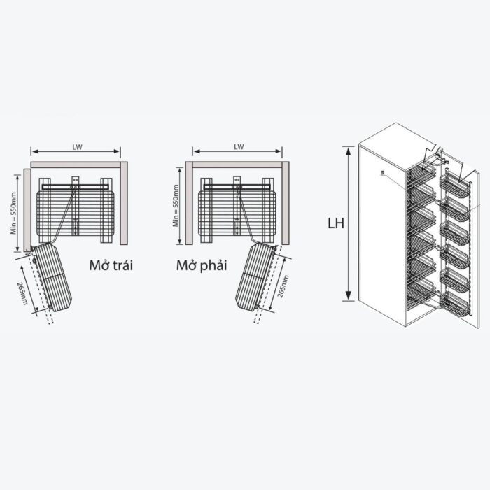 - Tủ lắp vừa khoang tủ từ 164cm trở lên: Tủ đồ khô 6 tầng được thiết kế để lắp vừa vào khoang tủ có chiều cao từ 164cm trở lên. Điều này mang lại sự linh hoạt và tùy chỉnh cho người dùng, giúp tận dụng không gian tủ hiệu quả.