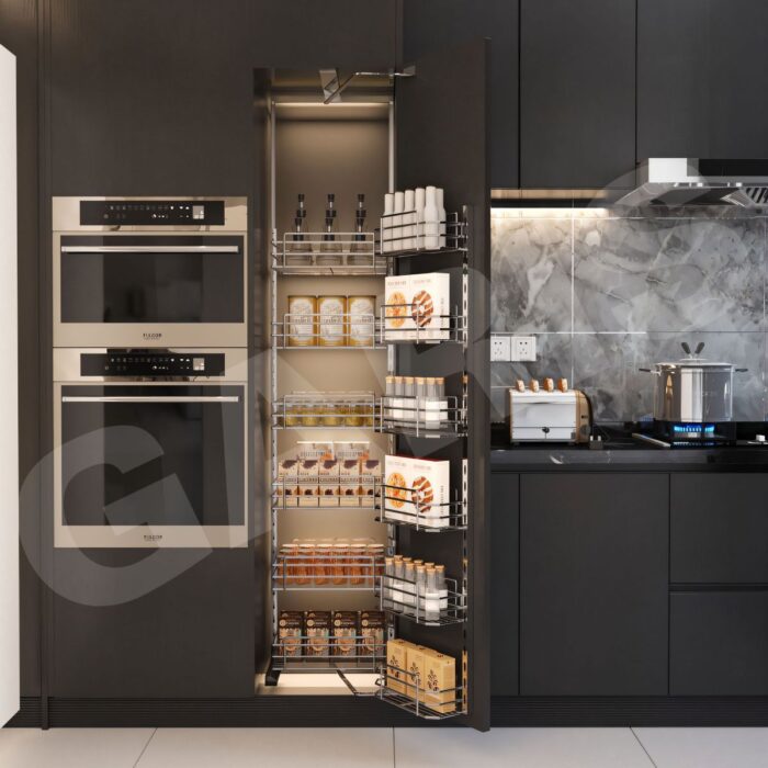 - Sử dụng ray con lăn cao cấp: Tủ đồ khô 6 tầng được trang bị ray con lăn cao cấp, giúp dễ dàng di chuyển và truy cập vào các tầng của tủ. Điều này giúp tiết kiệm thời gian và công sức khi lấy và sắp xếp đồ khô.