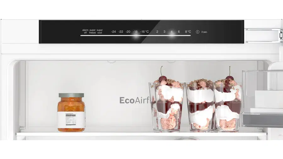 Bosch KIN86ADD0 được trang bị công nghệ EcoAirflow đảm bảo phân phối độ ẩm và nhiệt độ đến mọi ngóc ngách trong khoang tủ giúp thực phẩm tươi lâu hơn mà vẫn giữ nguyên dưỡng chất và sự thơm ngon khi nấu.