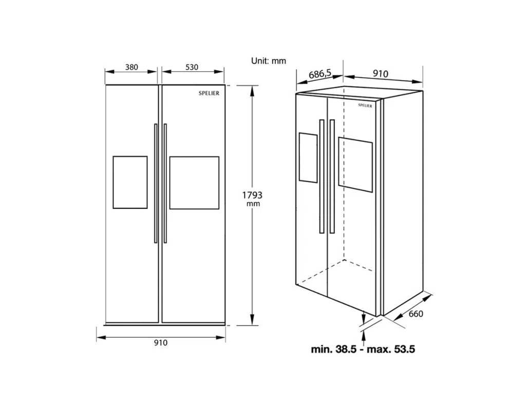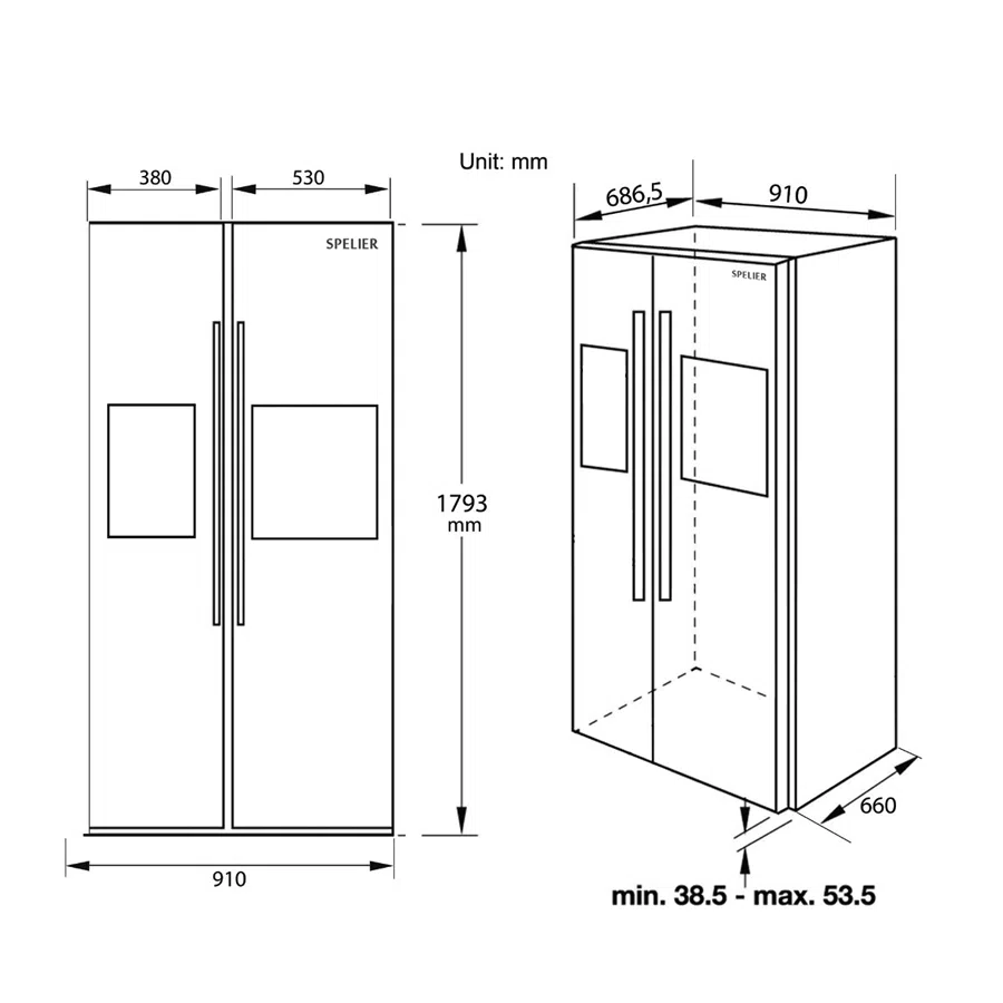 Tủ lạnh SPELIER Side by side SP 535BCD lấy đá ngoài với mini bar tiện lợi