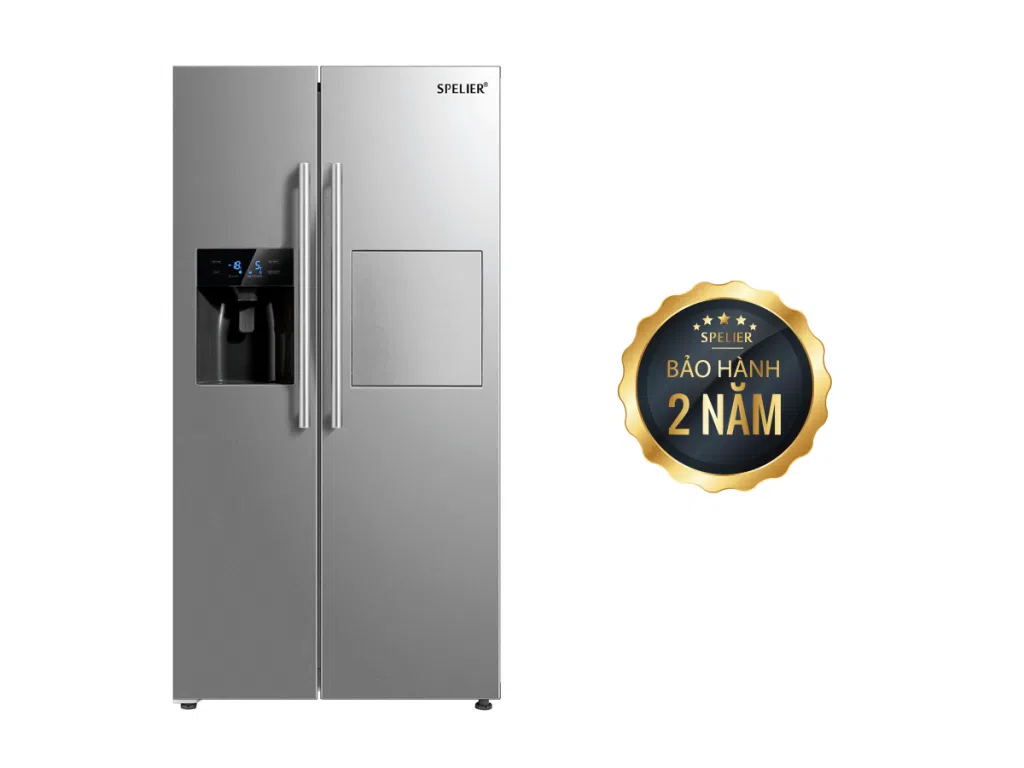 - Tủ lạnh Side by Side SPELIER với ngăn lấy đá ngoài trực tiếp: Đá viên, đá xay và nước lạnh