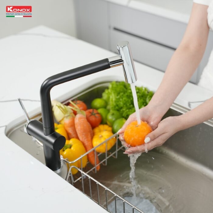 • Thân vòi xoay 360 độ cho phạm vi tiếp cận lớn