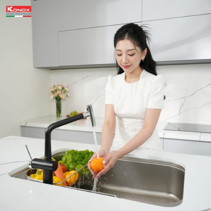 • Tay vòi ngang tối ưu không gian bàn bếp