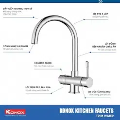 - Vòi rửa bát 3 đường nước: 2 đường nóng lạnh + 1 đường kết nối với máy lọc nước uống RO