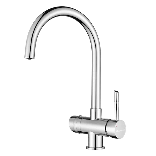 Lấy cảm hứng từ kiệt tác kiến trúc mái vòm, Vòi rửa bát ba đường nước RO TRIM-WATER mang đường nét vòng cung, kiểu dáng thanh lịch, đem lại hơi thở trang nhã cho mọi căn bếp sở hữu thiết bị. Bằng trang bị 3 đường nước tích hợp 2 đường nóng lạnh + 1 đường kết nối tương thích với các máy lọc RO nhằm tối ưu diện tích bàn bếp chuẩn bị – đây khẳng định là chuẩn mực thiết kế cho một gian bếp tối giản, hiện đại và tiện ích.
