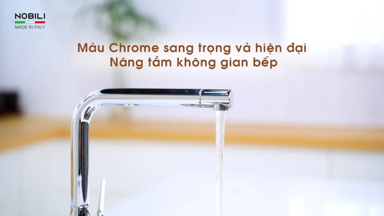 Lớp mạ Chrome hoàn thiện sáng bóng, đảm bảo độ bền cao, chống bám bẩn hiệu quả: Công nghệ mạ Chrome của vòi bếp Nobili không chỉ tạo nên lớp bề mặt sáng bóng sang trọng mà còn đảm bảo độ bền vượt trội theo thời gian. Áp dụng quy trình mạ nhiều lớp đạt chuẩn châu Âu, lớp chrome trên vòi Nobili giúp chống oxy hóa, chống trầy xước và dễ dàng vệ sinh, giữ cho sản phẩm luôn như mới sau thời gian dài sử dụng. Nhờ lớp phủ đồng đều, bám chắc, vòi không bị bong tróc dưới tác động của nước nóng, hóa chất tẩy rửa hay độ ẩm cao – đáp ứng hoàn hảo tiêu chuẩn của một gian bếp hiện đại và tinh tế.