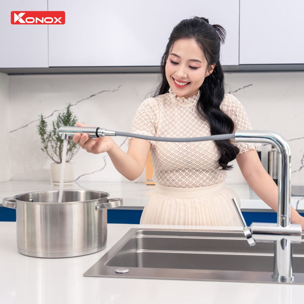 Vòi rửa bát dây rút Konox Stream Chrome