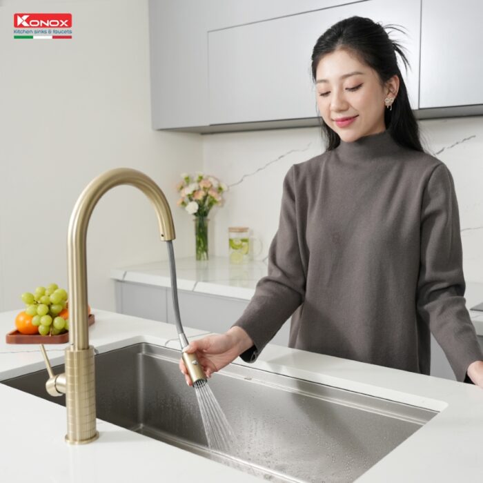 - Tay vòi ngang tối ưu không gian bàn bếp