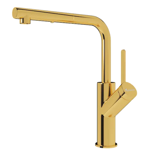 Với bề mặt hoàn thiện mạ PVD Chrome 5 lớp cùng hình khối “vuông thành sắc cạnh”, mặt ngoài của vòi rửa bát Model vòi rút dây Konox Artan Gold như một lớp gương phản chiếu khiến thiết bị được hòa nhập, kết nối với không gian xung quanh.