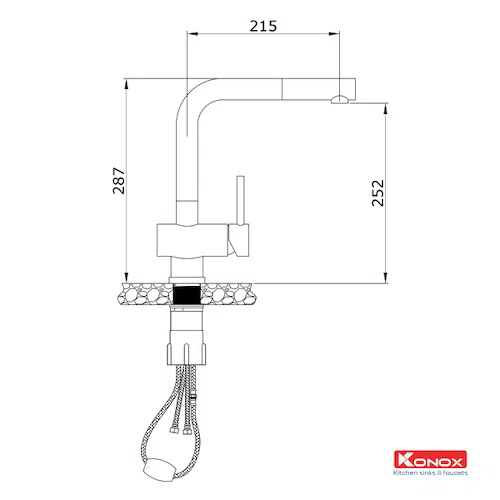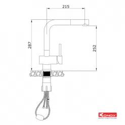 Lấy ý tưởng từ việc phát triển dòng sản phẩm vòi rửa bát đặt sự thuận tiện của người sử dụng lên hàng đầu, vòi rửa bát rút dây đang ngày càng trở lên phổ biến nhờ khả năng di chuyển cần rửa linh hoạt, mở rộng phạm vi thao tác. Vòi rửa bát rút dây KN1337 là sản phẩm hiếm hoi duy nhất trong bộ sưu tập vòi rút dây Konox sử dụng kiểu dáng thân vòi ngang. Thiết kế đặc biệt này khiến nó dễ dàng phù hợp với các phong cách bếp hiện đại hoặc cá tính, là sự kết hợp hoàn hảo giữa thiết kế và công năng.