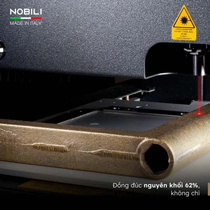 Nobili là doanh nghiệp duy nhất tại Ý và cả Châu Âu thực hiện toàn bộ quy trình sản xuất vòi nước ngay tại nhà máy của mình, không thuê ngoài dù là khâu nhỏ nhất. Nghĩa là Nobili tự thiết kế từng đường nét trên vòi nước, tự đúc đồng nguyên chất, nấu chảy và đúc khuôn, tự tiện từng chi tiết máy móc một cách tỉ mỉ, tự đánh bóng và mạ crôm để mang lại độ sáng bóng hoàn hảo, tự xử lý PVD để phủ màu hoàn thiện bền vững theo thời gian, và thậm chí tự gia công laser cho những họa tiết tinh xảo trên bề mặt sản phẩm.