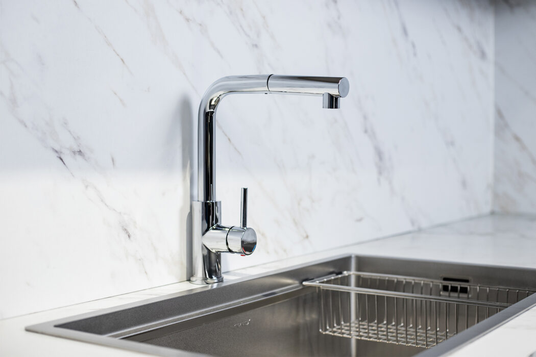 Tăng tính thẩm mỹ cho không gian bếp: Vẻ ngoài hiện đại, bóng mịn và tinh tế mang lại sự sang trọng cho khu vực bồn rửa.