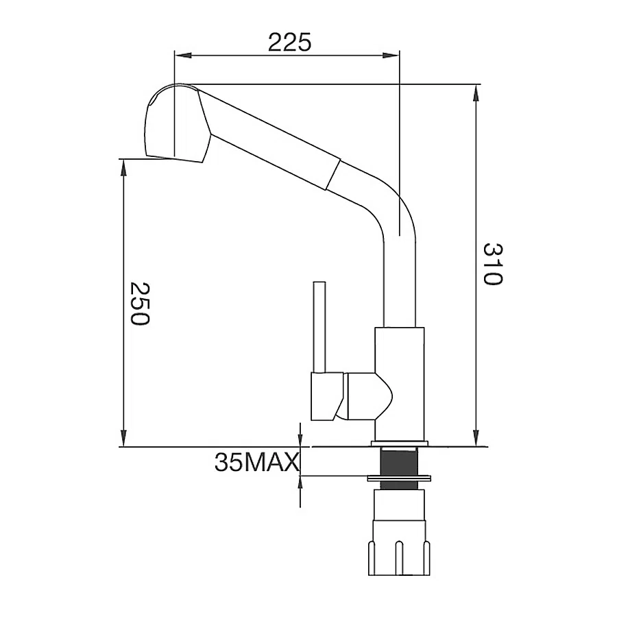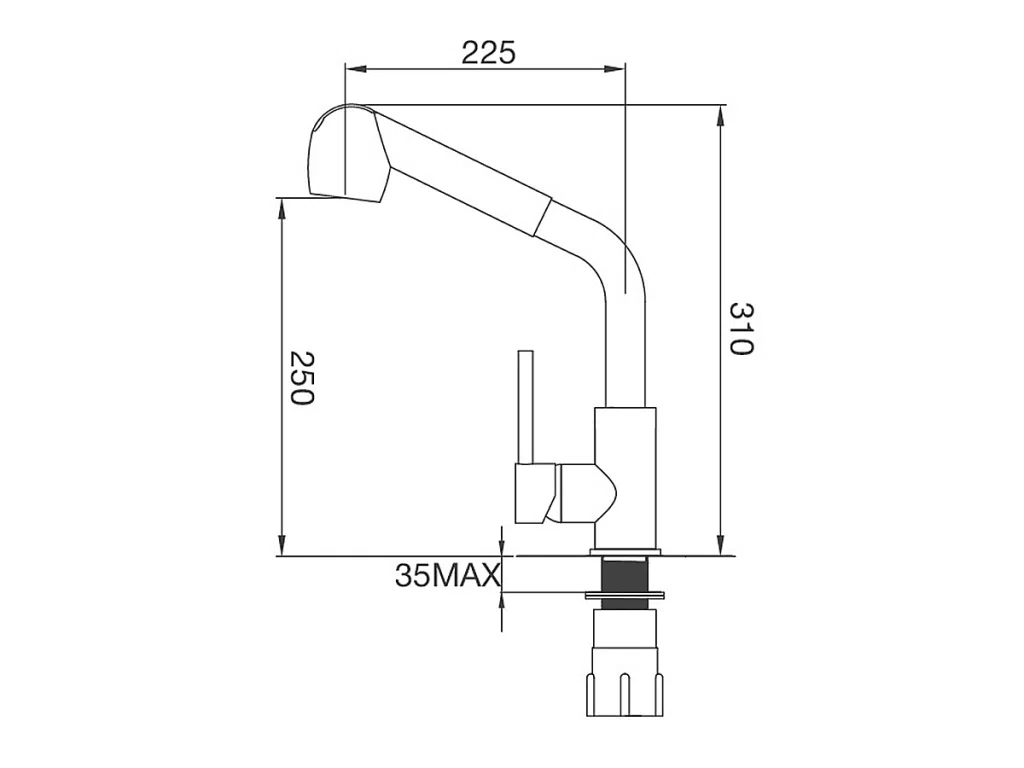 - Vòi rửa chén có dây rút, điều chỉnh tia nước