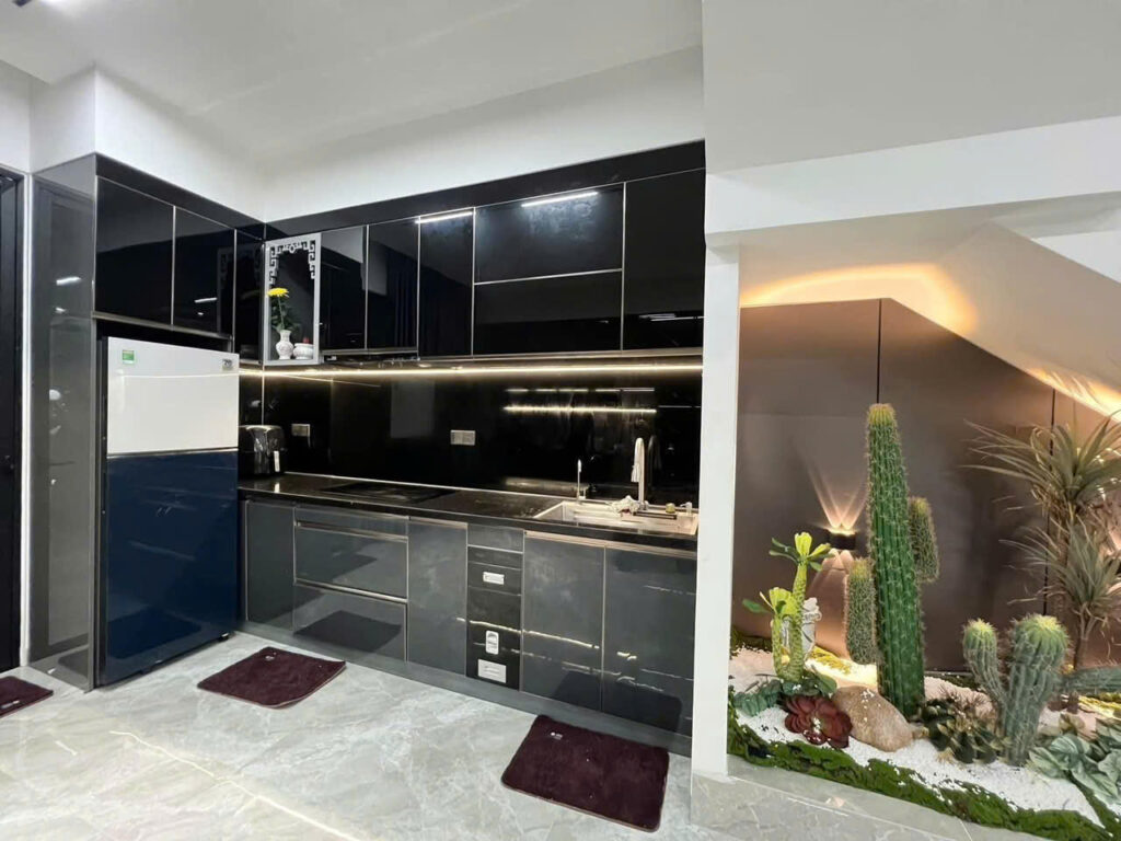 • Thi công nội thất phòng bếp: tủ bếp, bàn ăn, đảo bếp tiện nghi.