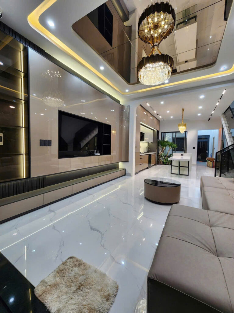 Thi công nội thất phòng khách hiện đại, sang trọng.